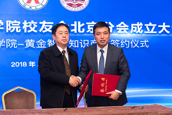 2018年2月4日,杨永岗与郑州大学法学院院长苗连营教授(左)签约。