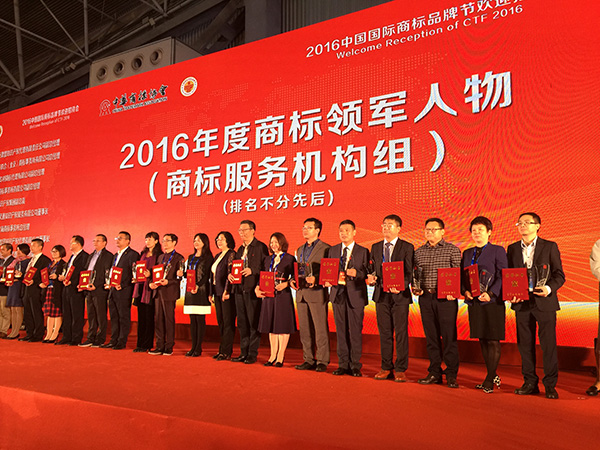 被中华商标协会授予“2016年度商标领军人物”荣誉称号