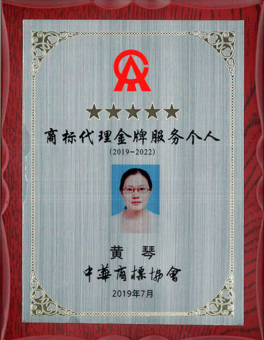 首批五星级商标代理金牌服务个人-黄琴(2019-2022)