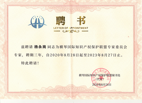 横琴国际知识产权保护联盟专家委员会专家-杨永岗