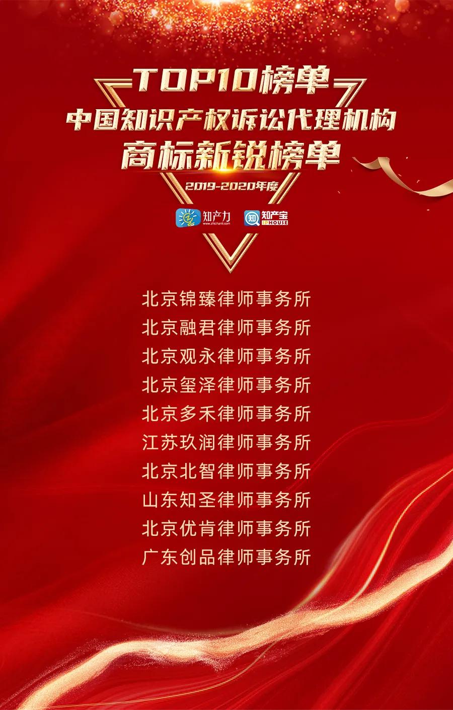 2019—2020年中国知识产权诉讼代理机构商标榜TOP10